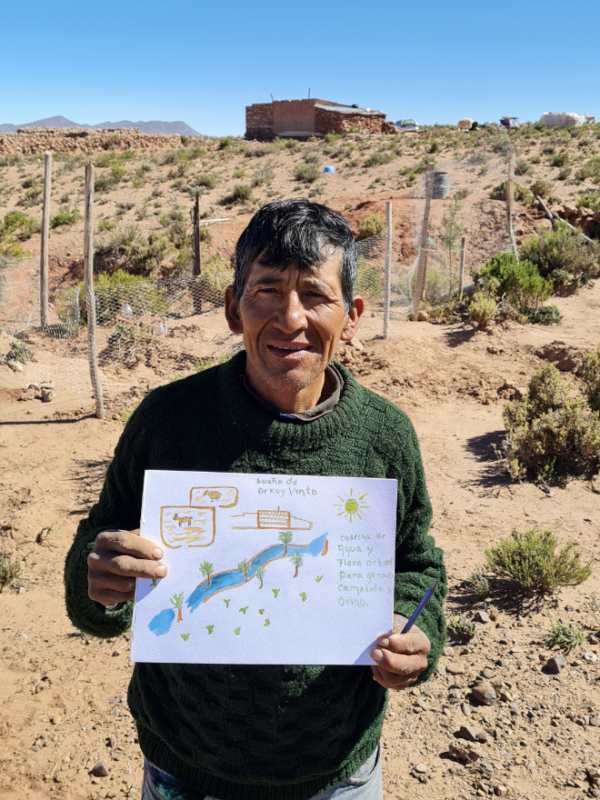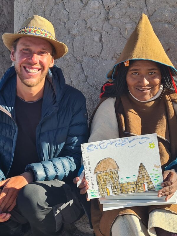 Son projet, Les Rêves du Désert, c’est aller à la rencontre des communautés ancestrales Aymara, Quechua et Chipaya qui vivent dans ces déserts boliviens — sans parler leur langue — pour leur poser une question simple : quel est votre rêve ? Carnet en main, il rencontre 32 communautés et réalise 37 interviews. De quoi remplir un carnet, et peut-être changer quelques visions du monde.